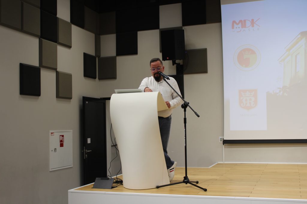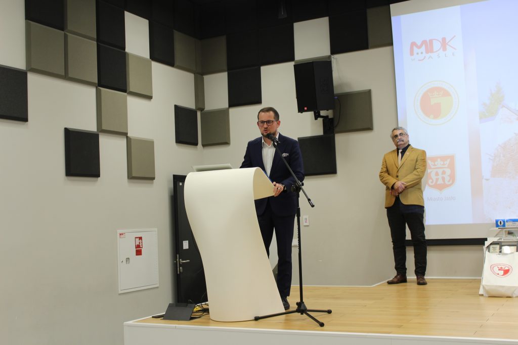 Następnie głos zabrał dr Przemysław Baciak – Zastępca Burmistrza Miasta Jasła, który podkreślił potrzebę organizowania tego typu konkursów, aby zachować pamięć o miejscach i wydarzeniach dla przyszłych pokoleń. W imieniu własnym i Burmistrza Miasta Jasła Adama Kostrząba pogratulował wszystkim uczestnikom tej edycji konkursu, jego laureatom i wyróżnionym, wyraził słowa uznania za wykonanie ciekawych i wartościowych prac. Stwierdził, że uwiecznianie każdej chwili, miejsca jest piękną pasją oraz życzył wszystkim, aby tę pasję kontynuowali i rozwijali. Podziękował też organizatorom – SMJiRJ oraz MDK w Jaśle – za przygotowanie i przeprowadzenie już trzydziestej edycji tego ważnego konkursu fotograficznego o tematyce jasielskiej. Przypomniał również, że końcem tego roku Stowarzyszenie Miłośników Jasła i Regionu Jasielskiego obchodzić będzie sześćdziesięciolecie społecznej i tak ważnej działalności na rzecz środowiska lokalnego.
