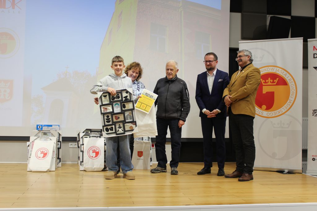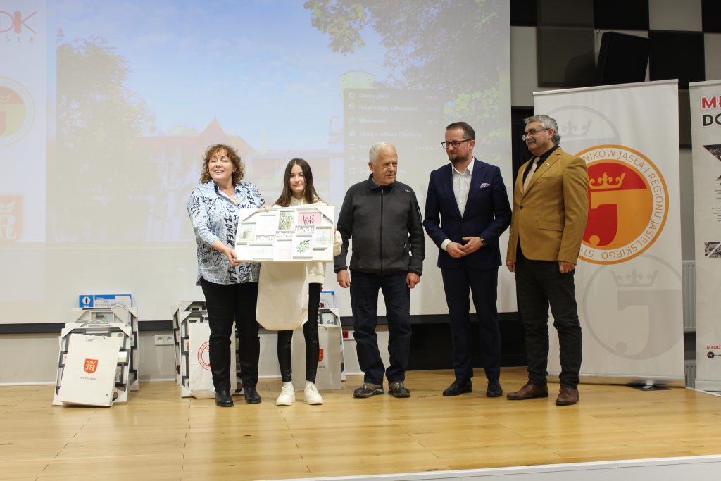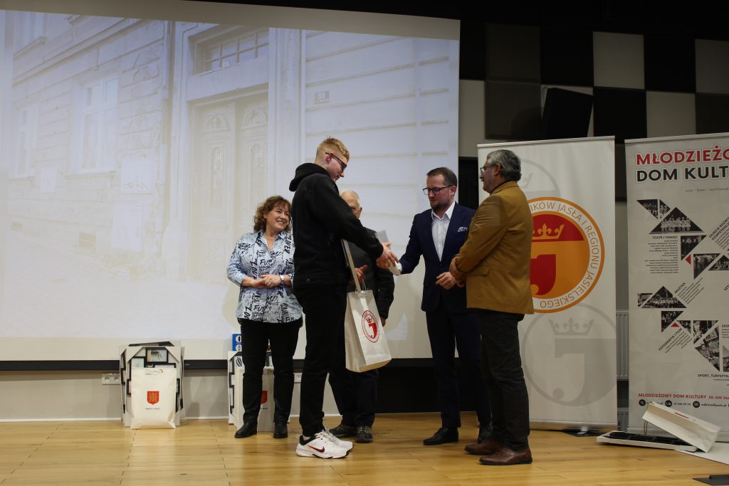 W dalszej części uroczystego spotkania prowadzonego przez Bartłomieja Wilka – zastępcę prezesa SMJiRJ, laureaci konkursu odebrali okolicznościowe dyplomy przygotowane przez Agnieszkę Kuczałę-Kołodziej z MDK i nagrody ufundowane przez Miasto Jasło oraz SMJiRJ. Wręczyli je: dr Przemysław Baciak – Zastępca Burmistrza Miasta Jasła, Małgorzata Piotrowska – wicedyrektor MDK w Jaśle, dr Wacław Mendys – przedstawiciel jury i Wiesław Hap – prezes SMJiRJ.