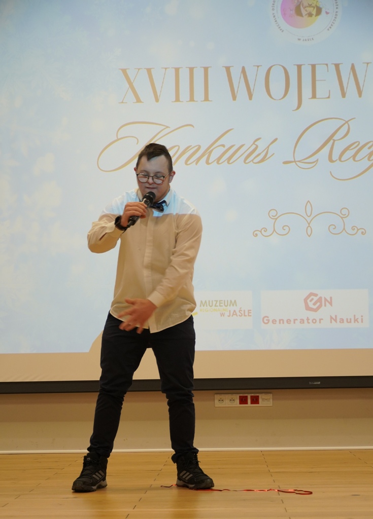 W imprezie uczestniczyło 28 uczniów z siedmiu placówek szkolnictwa specjalnego z województwa podkarpackiego. Konkurs dedykowany jest osobom z deficytami rozwojowymi współwystępującymi z niepełnosprawnością intelektualna w stopniu lekkim lub umiarkowanym. Cele, które przyświecają organizowanym przez nasz ośrodek konkursom recytatorskim, to: rozwijanie zdolności recytatorskich uczniów, wspieranie uzdolnień i pomoc w rozwijaniu zainteresowań uczniowskich, wzmacnianie wiary we własne siły, możliwości i radzenie sobie z występami publicznymi, uczenie rywalizacji w przyjaznej atmosferze. Poziom przygotowania do występów uczestników konkursu był bardzo wysoki, recytowane utwory, niejednokrotnie były długie i trudne. Dla niektórych był to pierwszy występ na scenie – musieli oni pokonać tremę, stres i lęk. Dzięki miłej i przyjaznej atmosferze, występujący przełamywali swoje obawy i niepewności, pięknie recytując przygotowane wiersze. Ze sceny schodzili uśmiechnięci, szczęśliwi, z poczuciem odniesionego sukcesu.