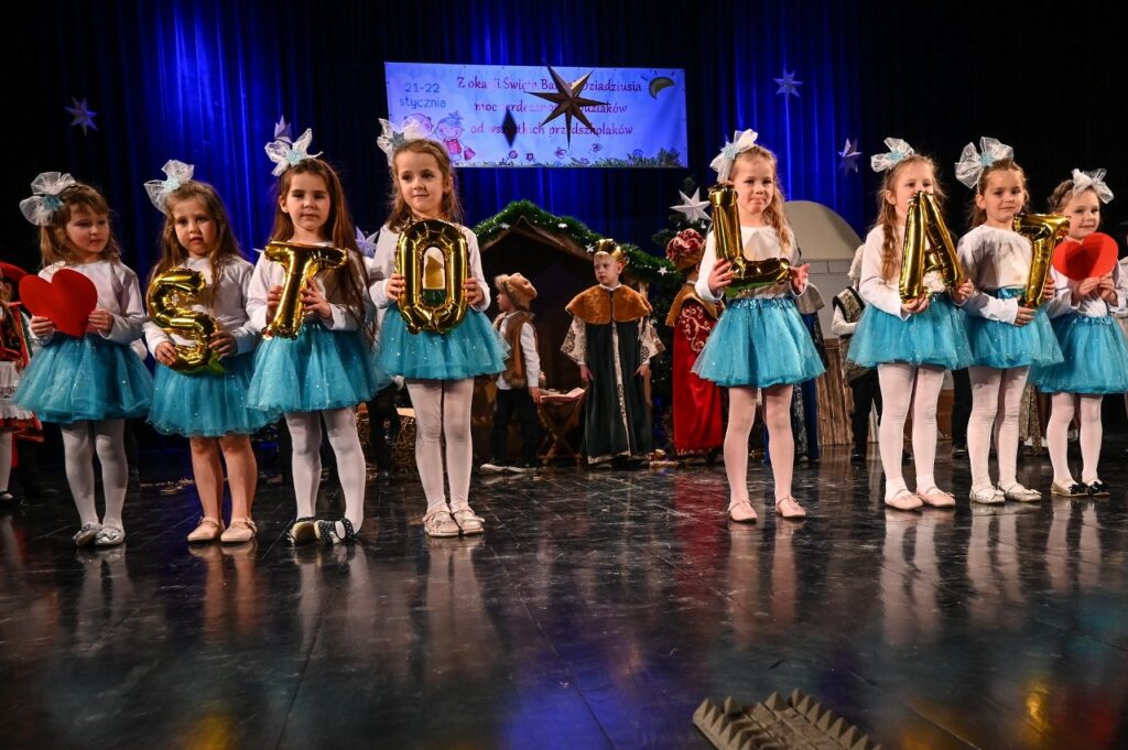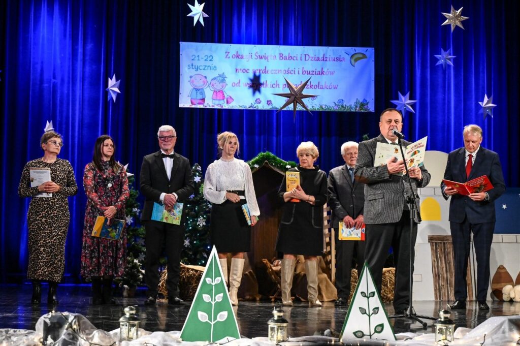 Dnia 22.01.2026r. tradycyjnie nasze przedszkole zorganizowało w Jasielskim Domu Kultury uroczystość z okazji Dnia Babci i Dziadka pod hasłem ,,Spotkanie pokoleń- Hej kolęda, kolęda”. Na uroczystość przybyli zaproszeni goście Marcin Węgrzyn Przewodniczący Rady Miejskiej Miasta Jasła, Wiceprzewodniczący Rady Miejskiej Miasta Jasła Jerzy Okarma oraz Katarzyna Koczwara pełniąca obowiązki Dyrektora Jasielskiego Domu Kultury.