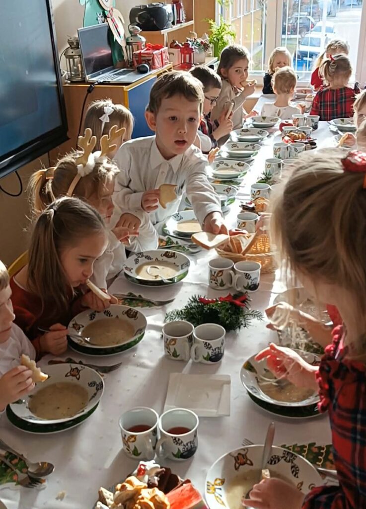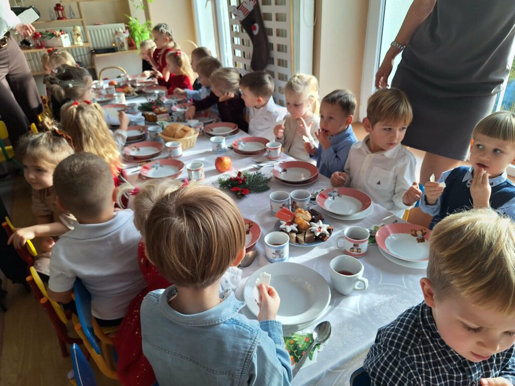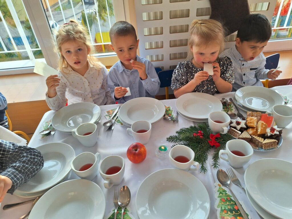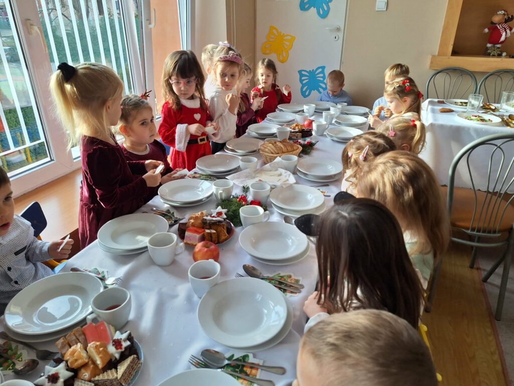W środę 17 grudnia w naszym przedszkolu odbyła się uroczysta Wigilia Bożego Narodzenia. Był to wyjątkowy i pełen ciepła dzień, który zgromadził całą społeczność przedszkolną oraz zaproszonych gości. Swoją obecnością zaszczycili nas: Burmistrz Miasta Jasła Adam Kostrząb, Kierownik Wydziału Edukacji Grzegorz Stanek oraz przedstawiciele Rady Rodziców: pan Marcin Sołtys, pani Katarzyna Piątkowska – Błaś.