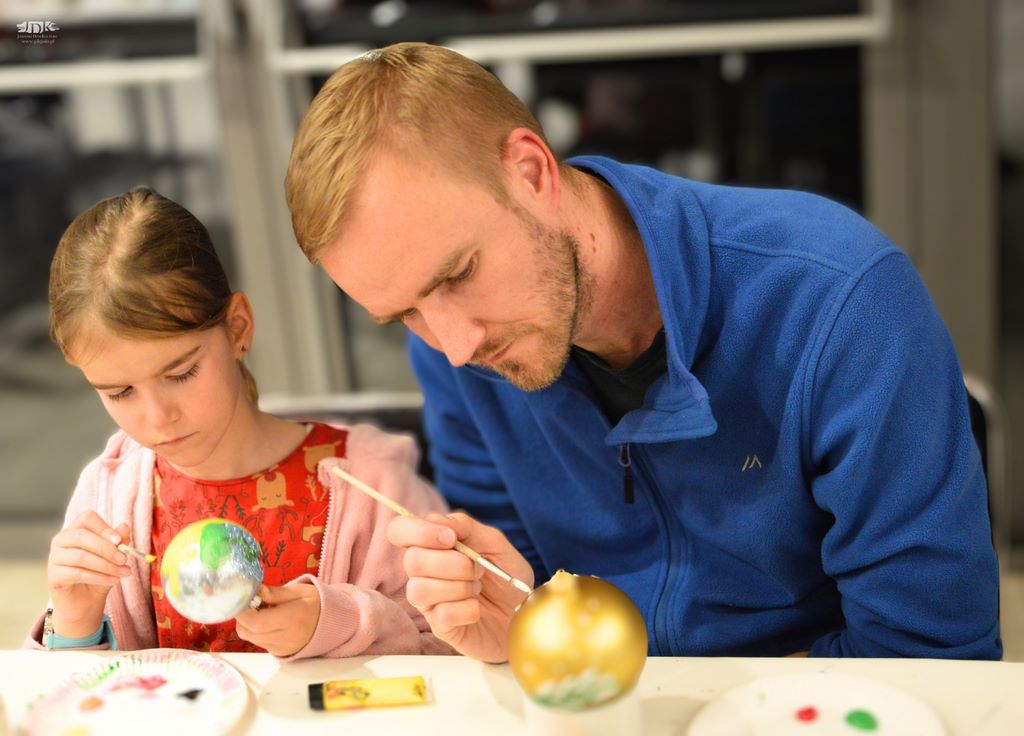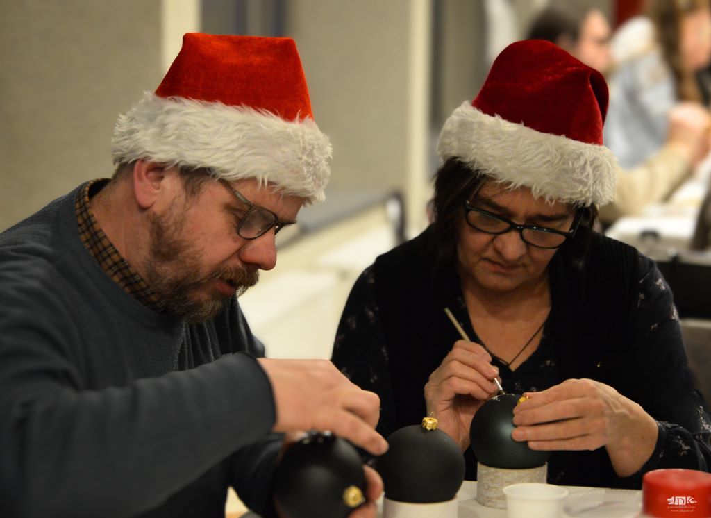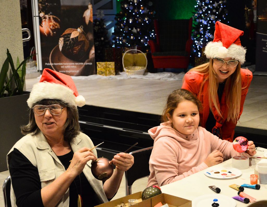 Uczestnicy mieli okazję własnoręcznie ozdabiać bombki o różnych kształtach, korzystając z bogatego arsenału materiałów: kryształków, brokatów, klejów i farb. Każdy mógł stworzyć jedyną w swoim rodzaju ozdobę, którą następnie zabrał do domu, by w ten sposób wprowadzić do swojego wnętrza niepowtarzany, świąteczny klimat.