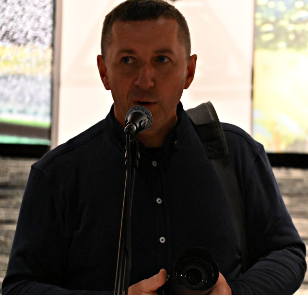 Wśród zaproszonych gości był także dr Łukasz Szmyd, dyrektor Policealnego Studium Animatorów Kultury (PSAK) w Krośnie, który zwrócił uwagę m.in. na wyjątkowe warunki ekspozycyjne JDK oraz wspomniał o długoletniej tradycji Studium – Mam przyjemność reprezentować szkołę, która od ponad 50 lat kształci animatorów kultury: w zakresie tańca, animacji regionalnej i fotografii. Dzisiejsza wystawa jest efektem współpracy naszych słuchaczy z Centrum Dziedzictwa Szkła. To próba pokazania szkła i jego twórców z różnych perspektyw – przez ich „szklane oko” – mówił podczas wernisażu.