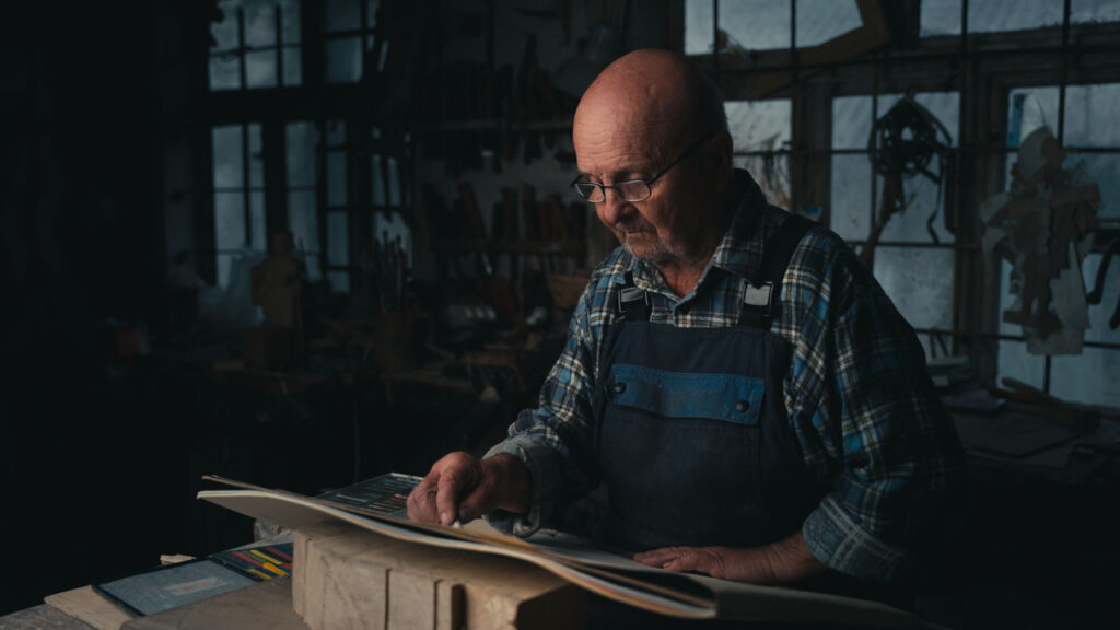 Twórcy filmu portretują rzeźbiarza w naturalnym środowisku, ukazując jego sposób postrzegania świata i sztuki.
