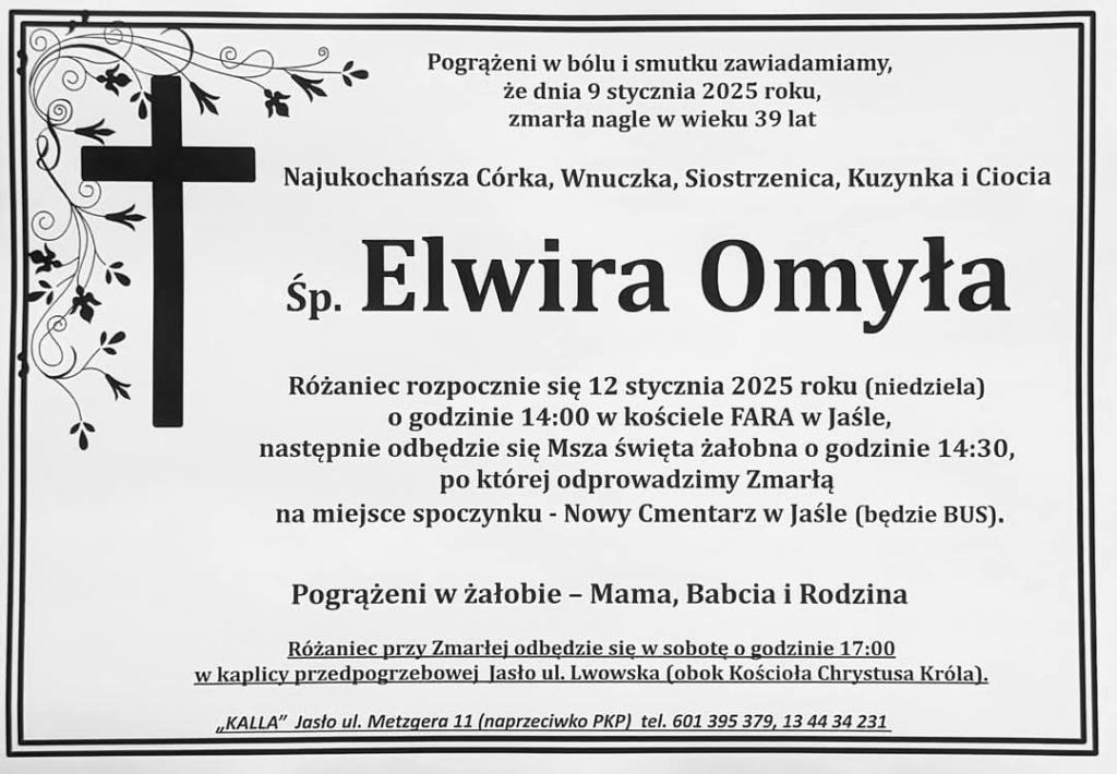 Z wielkim smutkiem przyjęliśmy wiadomość o śmierci śp. Elwiry Omyły pracownika Urzędu Miasta w Jaśle w latach 2015 – 2025.
