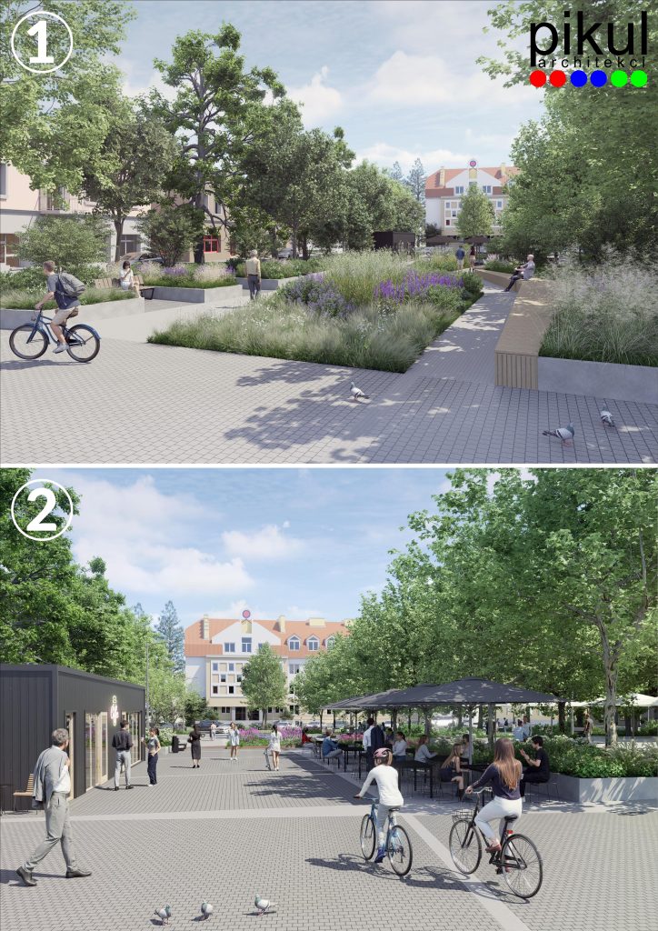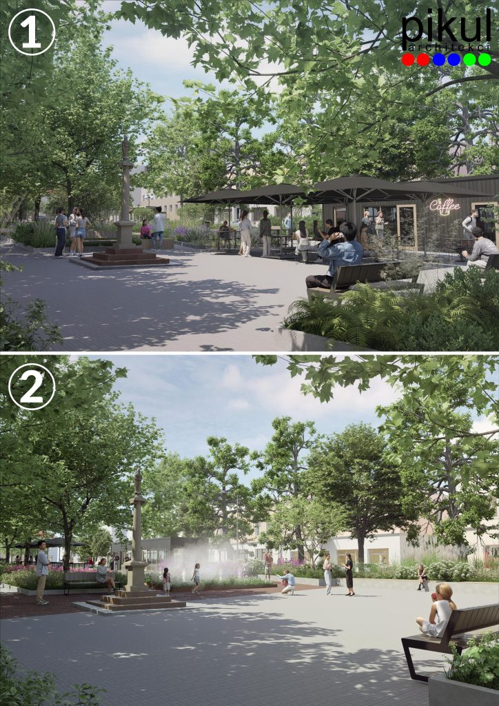 Projekt zakłada również powstanie obiektu tymczasowego (użytkowanego sezonowo), łączącego funkcję kawiarni oraz szaletu miejskiego. Co więcej, projekt przewiduje renowację figury św. Jana Nepomucena oraz starej studni.