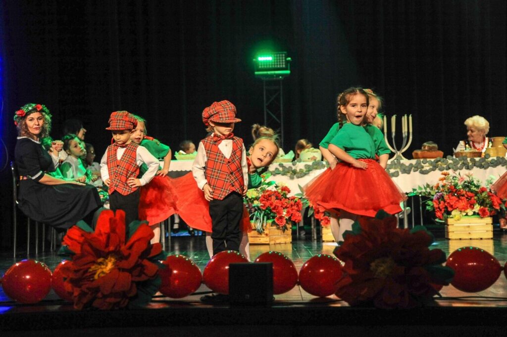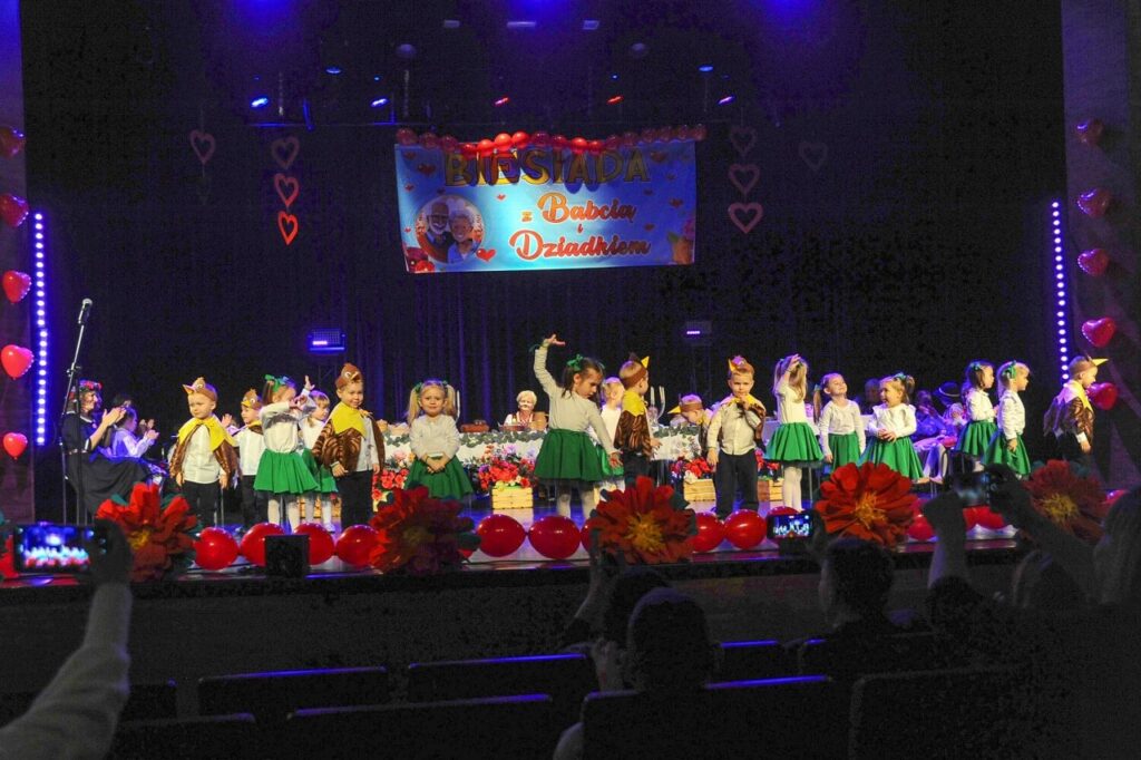 Biesiadę rozpoczęła najmłodsza grupa, małe, słodkie Misie, które zatańczyły do piosenki „W zielonym gaju”, przenosząc nas do urokliwego miejsca, gdzie „ptaszki śpiewają pod jaworem”. Następnie zaśpiewały piosenkę „Rock and roll dla Babci i Dziadka”, przesyłając tym samym najpiękniejsze życzenia.