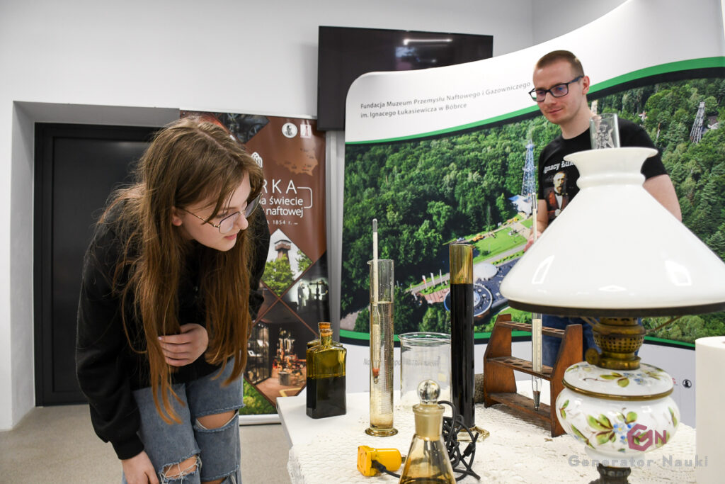 Z ciekawą prelekcją do Generatora zawitali również edukatorzy z Muzeum Przemysłu Naftowego i Gazowniczego im. Ignacego Łukasiewicza w Bóbrce. Do Jasła przywieźli kilka ciekawych eksponatów związanych z “czarnym złotem”, w tym między innymi: model kiwona oraz lampy naftowe. Uczniowie szkół podstawowych, których zaprosiliśmy do udziału w zajęciach przekonali się, że ropa naftowa ma większą gęstość niż woda. Poznali również życiorys Ignacego Łukasiewicza.