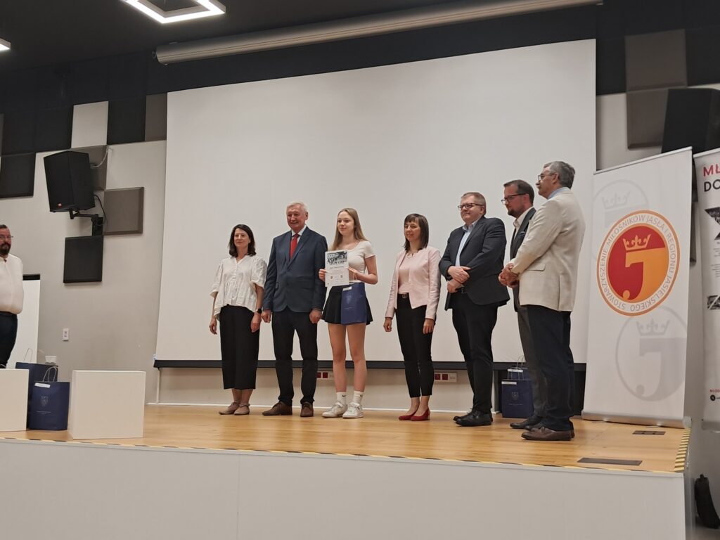 Z kolei Grażyna Leńczuk – dyrektor MDK w Jaśle – powitała gości wydarzenia: Adama Pawlusia – Starostę Jasielskiego, dr. Przemysława Baciaka – Zastępcę Burmistrza Miasta Jasła, Jana Pytlewskiego – Prezesa Zarządu Orion Engineered Carbons Sp. z o.o. Jasło, Monikę Pabisz – Prokurenta Spółki Orion Engineered Carbons Sp. z o.o. Jasło, Monikę Niziołek – Naczelnika Wydziału Promocji i Spraw Społecznych Starostwa Powiatowego w Jaśle, Krzysztofa Halucha – Kierownika Generatora Nauki GEN w Jaśle, jurorów oceniających prace konkursowe oraz członków Zarządu SMJiRJ.