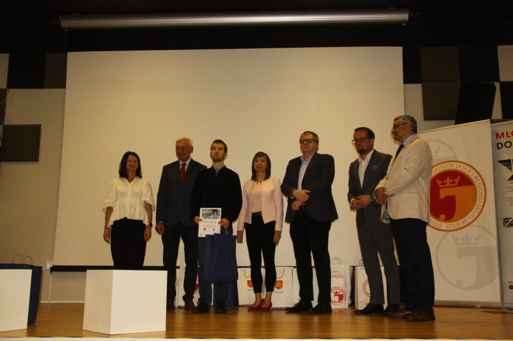 W dalszej części tego uroczystego spotkania głos zabrali: dr. Przemysław Baciak – Zastępca Burmistrza Miasta Jasła i Adam Pawluś – Starosta Jasielski. Podziękowali organizatorom za kolejną edycję tego corocznego wartościowego konkursu tak ważnego dla edukacji i wychowania młodego pokolenia jaślan i mieszkańców powiatu oraz pogratulowali wszystkim nagrodzonym. Podkreślili też rolę jaką spełniają tego typu konkursy w dziele przybliżania młodym mieszkańcom historii i dziedzictwa kulturowego naszego miasta i regionu, naszej „Małej Ojczyzny”.