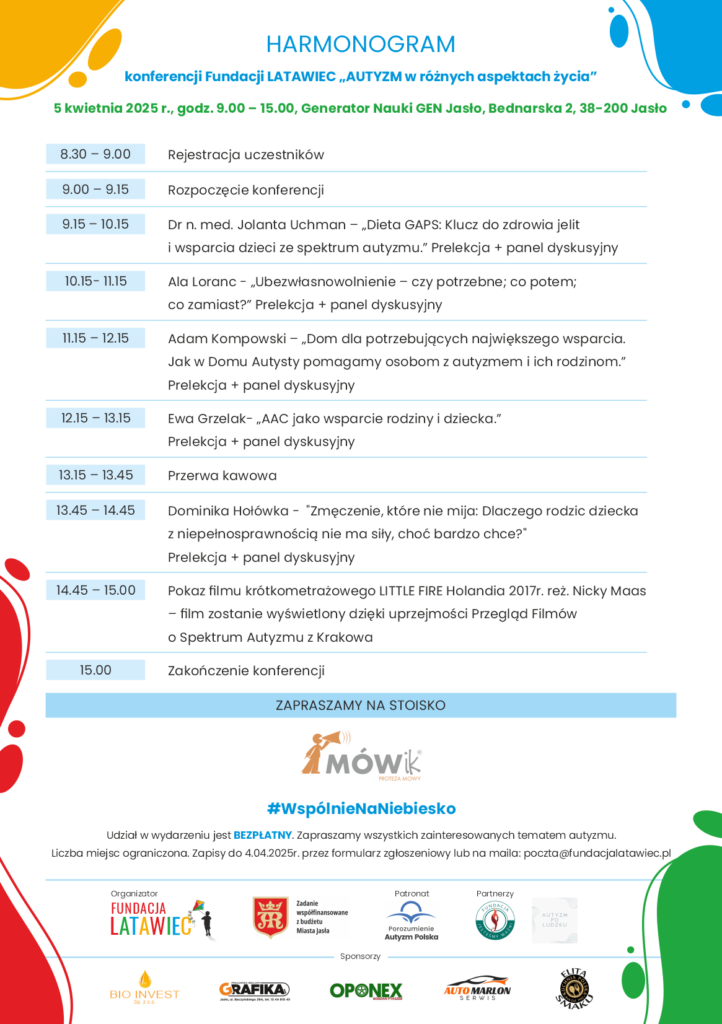 „Zadanie pn. „AUTYZM w różnych aspektach życia” zostało współfinansowane z budżetu Miasta Jasła na 2025 rok.